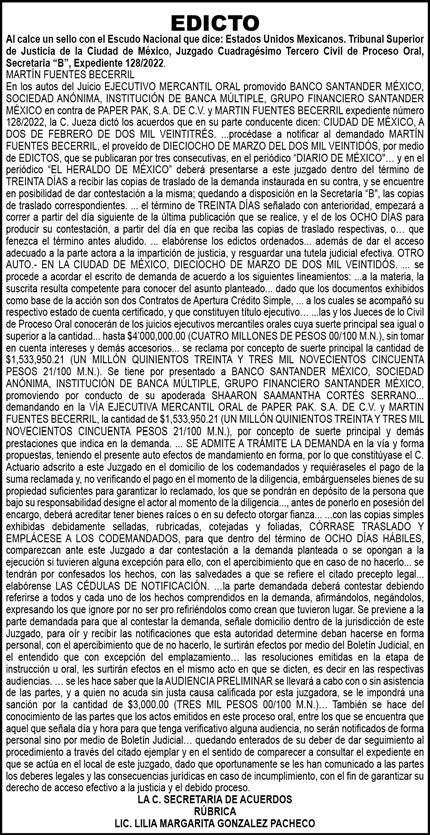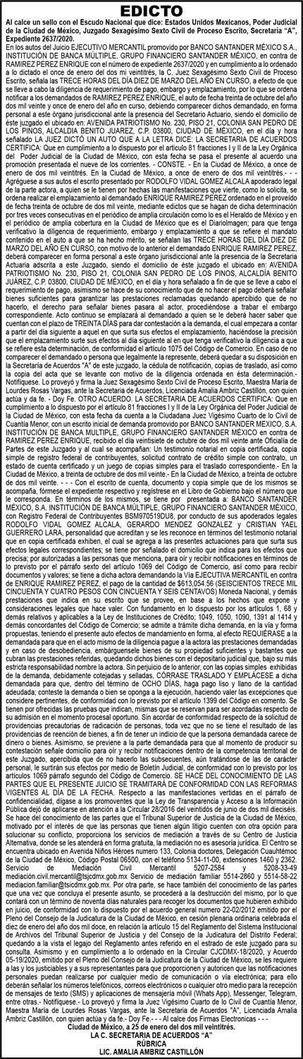 Diario El Heraldo de México. Editor responsable: Alfredo González Castro. Número de Certificado de Reserva otorgado por el Instituto Nacional del Derecho de Autor 04-2009-060419022100-101. Número de Certificado de Licitud de título y Contenido No.16921. Domicilio de la Publicación: Paseo de la Reforma No. 250, Piso 24, Colonia Juárez, Del. Cuauhtémoc, C.P. 06600, Ciudad de México. Imprenta: Impreso en Talleres de La Crónica Diaria , S.A. de C. V. Calzada Azcapotzalco La Villa No. 160 Barrio San Marcos , Alcaldia Azcapotzalco, CP 02020. Publicación Diaria. Todos los derechos están reservados. Queda estrictamente prohibida la reproducción total o parcial de los contenidos e imágenes de esta publicación sin previa autorización de El Heraldo de México. El contenido de los artículos es responsabilidad exclusiva de los autores.