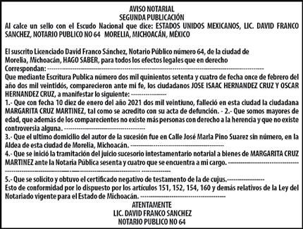 Diario El Heraldo de México. Editor responsable: Alfredo González Castro. Número de Certificado de Reserva otorgado por el Instituto Nacional del Derecho de Autor 04-2009-060419022100-101. Número de Certificado de Licitud de título y Contenido No.16921. Domicilio de la Publicación: Paseo de la Reforma No. 250, Piso 24, Colonia Juárez, Del. Cuauhtémoc, C.P. 06600, Ciudad de México. Imprenta: Impreso en Talleres de La Crónica Diaria , S.A. de C. V. Calzada Azcapotzalco La Villa No. 160 , Barrio San Marcos Alcaldia Azcapotzalco, CP 02020. Publicación Diaria. Todos los derechos están reservados. Queda estrictamente prohibida la reproducción total o parcial de los contenidos e imágenes de esta publicación sin previa autorización de El Heraldo de México. El contenido de los artículos es responsabilidad exclusiva de los autores.