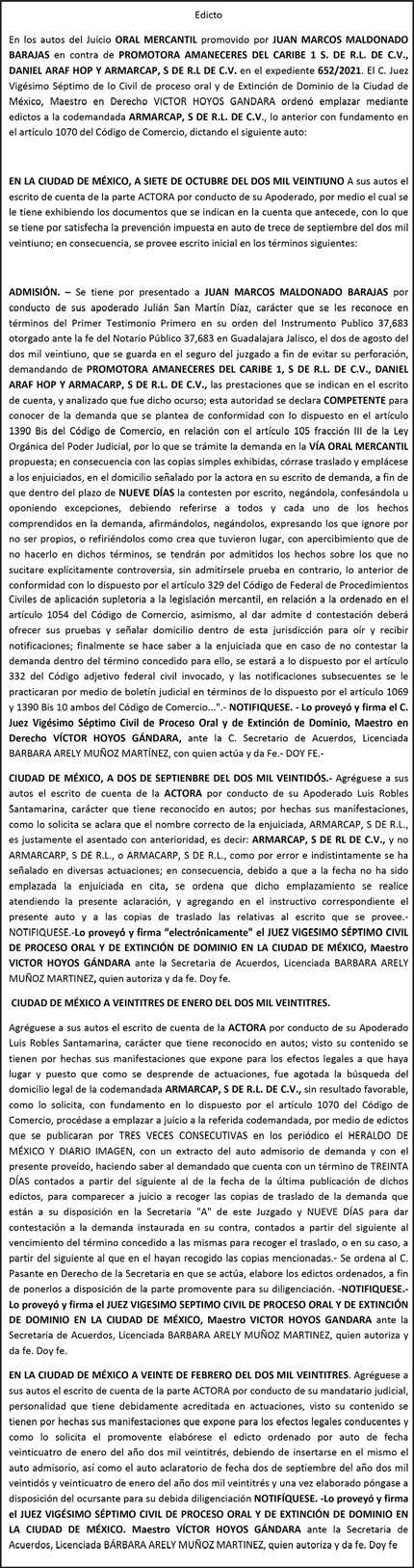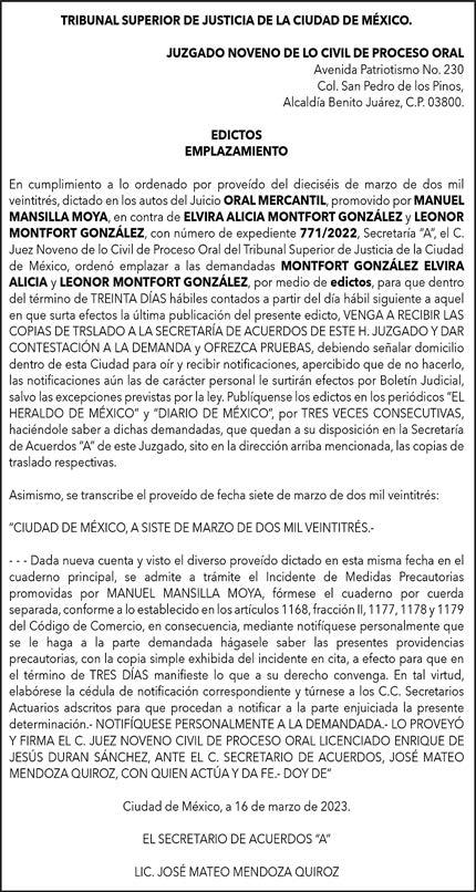 Diario El Heraldo de México. Editor responsable: Alfredo González Castro. Número de Certificado de Reserva otorgado por el Instituto Nacional del Derecho de Autor 04-2009-060419022100-101. Número de Certificado de Licitud de título y Contenido No.16921. Domicilio de la Publicación: Paseo de la Reforma No. 250, Piso 24, Colonia Juárez, Del. Cuauhtémoc, C.P. 06600, Ciudad de México. Imprenta: Impreso en Talleres de La Crónica Diaria , S.A. de C. V. Calzada Azcapotzalco La Villa No. 160 , Barrio San Marcos Alcaldia Azcapotzalco, CP 02020. Publicación Diaria. Todos los derechos están reservados. Queda estrictamente prohibida la reproducción total o parcial de los contenidos e imágenes de esta publicación sin previa autorización de El Heraldo de México. El contenido de los artículos es responsabilidad exclusiva de los autores.