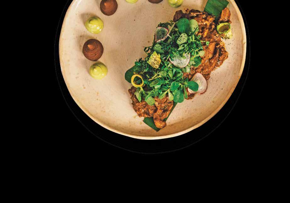 Quetzalcóatl Zurita se define como rebelde, perseverante y evoluti vo. Es un cocinero que le encanta explorar y conocer cosas nuevas. "Esa evolución constante de estar probando cosas distintas es algo que me mueve. Cuando tenía 18 años no tenía conocimiento de un vino, pero sí de un mole. Des conocía que hubiera otro queso que no fuera el fresco; además del requesón de mi abuela. Entonces, cuando entré a la escuela de cocina, la verdad es que la curiosidad me hizo ver qué más podía descubrir, conocer y entender. Y cuando llegué a las aulas y me enseñaron las bases de la cocina francesa, la riqueza de distintos productos, de los quesos y vinos para mí fue como si a un artista le pusieras una nueva paleta de colores que no conocía, fue conocer, probar, experimentar y arriesgarse a hacer algo distinto y me generó muchísima satisfacción saber que había algo más allá de lo que yo conocía; ese es el trabajó que he hecho en Almoraduz", detalló el cocinero.
