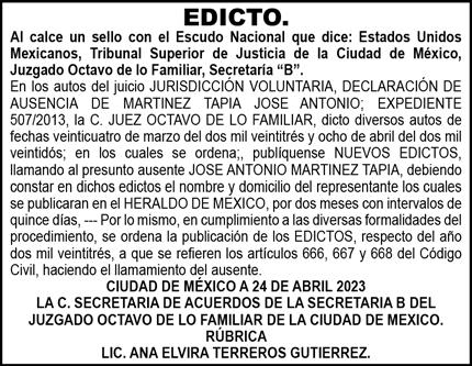 Diario El Heraldo de México. Editor responsable: Alfredo González Castro. Número de Certificado de Reserva otorgado por el Instituto Nacional del Derecho de Autor 04-2009-060419022100-101. Número de Certificado de Licitud de título y Contenido No.16921. Domicilio de la Publicación: Paseo de la Reforma No. 250, Piso 24, Colonia Juárez, Del. Cuauhtémoc, C.P. 06600, Ciudad de México. Imprenta: Impreso en Talleres de La Crónica Diaria , S.A. de C. V. Calzada Azcapotzalco La Villa No. 160 , Barrio San Marcos Alcaldia Azcapotzalco, CP 02020. Publicación Diaria. Todos los derechos están reservados. Queda estrictamente prohibida la reproducción total o parcial de los contenidos e imágenes de esta publicación sin previa autorización de El Heraldo de México. El contenido de los artículos es responsabilidad exclusiva de los autores.