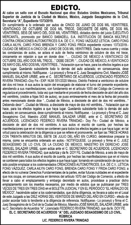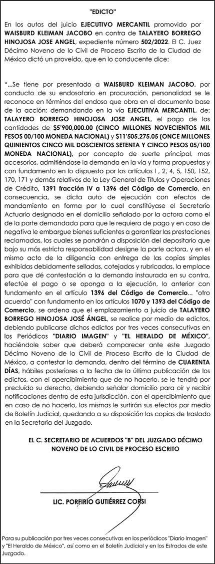 Diario El Heraldo de México. Editor responsable: Alfredo González Castro. Número de Certificado de Reserva otorgado por el Instituto Nacional del Derecho de Autor 04-2009-060419022100-101. Número de Certificado de Licitud de título y Contenido No.16921. Domicilio de la Publicación: Paseo de la Reforma No. 250, Piso 24, Colonia Juárez, Del. Cuauhtémoc, C.P. 06600, Ciudad de México. Imprenta: Impreso en Talleres de La Crónica Diaria , S.A. de C. V. Calzada Azcapotzalco La Villa No. 160 , Barrio San Marcos Alcaldia Azcapotzalco, CP 02020. Publicación Diaria. Todos los derechos están reservados. Queda estrictamente prohibida la reproducción total o parcial de los contenidos e imágenes de esta publicación sin previa autorización de El Heraldo de México. El contenido de los artículos es responsabilidad exclusiva de los autores.