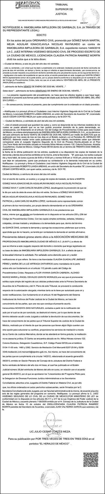 Diario El Heraldo de México. Editor responsable: Alfredo González Castro. Número de Certificado de Reserva otorgado por el Instituto Nacional del Derecho de Autor 04-2009-060419022100-101. Número de Certificado de Licitud de título y Contenido No.16921. Domicilio de la Publicación: Paseo de la Reforma No. 250, Piso 24, Colonia Juárez, Del. Cuauhtémoc, C.P. 06600, Ciudad de México. Imprenta: Impreso en Talleres de La Crónica Diaria , S.A. de C. V. Calzada Azcapotzalco La Villa No. 160 , Barrio San Marcos Alcaldia Azcapotzalco, CP 02020. Publicación Diaria. Todos los derechos están reservados. Queda estrictamente prohibida la reproducción total o parcial de los contenidos e imágenes de esta publicación sin previa autorización de El Heraldo de México. El contenido de los artículos es responsabilidad exclusiva de los autores.