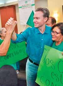 Le sigue Pedro Kumamoto (Futuro) con 12.5 por ciento y Laura Haro (PRI, PAN y PRD) con 11.8 por ciento. Otro 14.5 por ciento no sabe por quién votar.