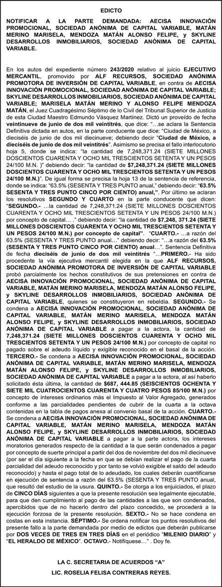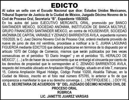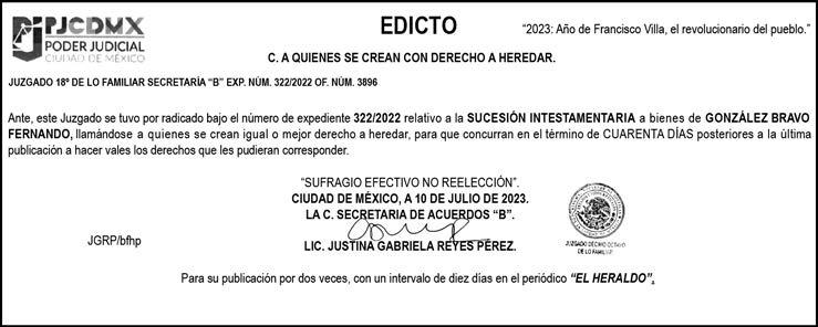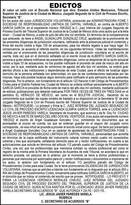 Diario El Heraldo de México. Editor responsable: Alfredo González Castro. Número de Certificado de Reserva otorgado por el Instituto Nacional del Derecho de Autor 04-2009-060419022100-101. Número de Certificado de Licitud de título y Contenido No.16921. Domicilio de la Publicación: Paseo de la Reforma No. 250, Piso 24, Colonia Juárez, Del. Cuauhtémoc, C.P. 06600, Ciudad de México. Imprenta: Impreso en Talleres de La Crónica Diaria , S.A. de C. V. Calzada Azcapotzalco La Villa No. 160 , Barrio San Marcos Alcaldia Azcapotzalco, CP 02020. Publicación Diaria. Todos los derechos están reservados. Queda estrictamente prohibida la reproducción total o parcial de los contenidos e imágenes de esta publicación sin previa autorización de El Heraldo de México. El contenido de los artículos es responsabilidad exclusiva de los autores.
