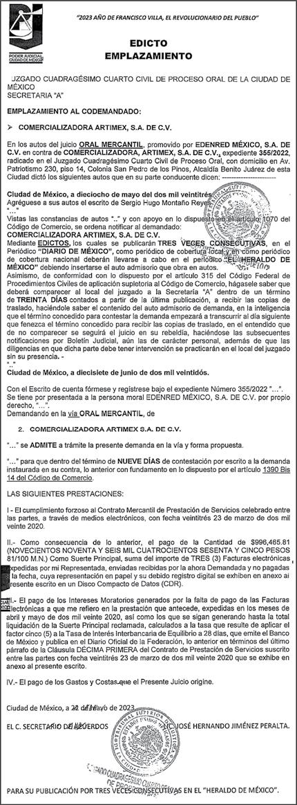 Diario El Heraldo de México. Editor responsable: Alfredo González Castro. Número de Certificado de Reserva otorgado por el Instituto Nacional del Derecho de Autor 04-2009-060419022100-101. Número de Certificado de Licitud de título y Contenido No.16921. Domicilio de la Publicación: Paseo de la Reforma No. 250, Piso 24, Colonia Juárez, Del. Cuauhtémoc, C.P. 06600, Ciudad de México. Imprenta: Impreso en Talleres de La Crónica Diaria , S.A. de C. V. Calzada Azcapotzalco La Villa No. 160 , Barrio San Marcos Alcaldia Azcapotzalco, CP 02020. Publicación Diaria. Todos los derechos están reservados. Queda estrictamente prohibida la reproducción total o parcial de los contenidos e imágenes de esta publicación sin previa autorización de El Heraldo de México. El contenido de los artículos es responsabilidad exclusiva de los autores.