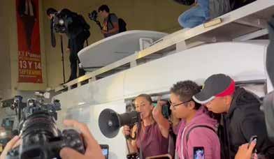 Frenó su camino y se subió a una camioneta. Con la sonrisa en su rostro, le dieron un megáfono y sentenció: “qué viva la Cuarta Transformación”.