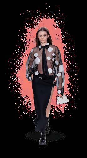 l Los puntos en tonos blanco y negro regresan esta temporada con fuerza, ya sea en una sola prenda o en un conjunto lo cual amamos. Además de ver muchas transparencias en vestidos y blusas.