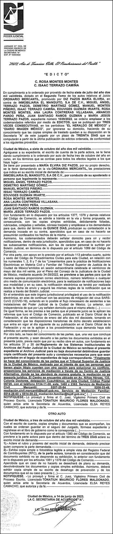 Diario El Heraldo de México. Editor responsable: Alfredo González Castro. Número de Certificado de Reserva otorgado por el Instituto Nacional del Derecho de Autor 04-2009-060419022100-101. Número de Certificado de Licitud de título y Contenido No.16921. Domicilio de la Publicación: Paseo de la Reforma No. 250, Piso 24, Colonia Juárez, Del. Cuauhtémoc, C.P. 06600, Ciudad de México. Imprenta: Impreso en Talleres de La Crónica Diaria , S.A. de C. V. Calzada Azcapotzalco La Villa No. 160 , Barrio San Marcos Alcaldia Azcapotzalco, CP 02020. Publicación Diaria. Todos los derechos están reservados. Queda estrictamente prohibida la reproducción total o parcial de los contenidos e imágenes de esta publicación sin previa autorización de El Heraldo de México. El contenido de los artículos es responsabilidad exclusiva de los autores.