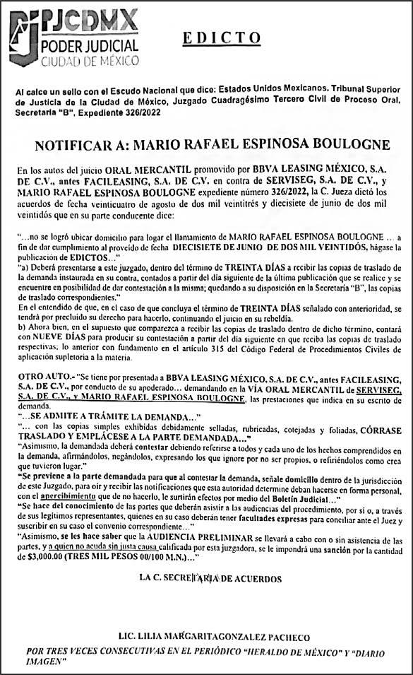 Diario El Heraldo de México. Editor responsable: Alfredo González Castro. Número de Certificado de Reserva otorgado por el Instituto Nacional del Derecho de Autor 04-2009-060419022100-101. Número de Certificado de Licitud de título y Contenido No.16921. Domicilio de la Publicación: Paseo de la Reforma No. 250, Piso 24, Colonia Juárez, Del. Cuauhtémoc, C.P. 06600, Ciudad de México. Imprenta: Impreso en Talleres de La Crónica Diaria , S.A. de C. V. Calzada Azcapotzalco La Villa No. 160 , Barrio San Marcos Alcaldia Azcapotzalco, CP 02020. Publicación Diaria. Todos los derechos están reservados. Queda estrictamente prohibida la reproducción total o parcial de los contenidos e imágenes de esta publicación sin previa autorización de El Heraldo de México. El contenido de los artículos es responsabilidad exclusiva de los autores.