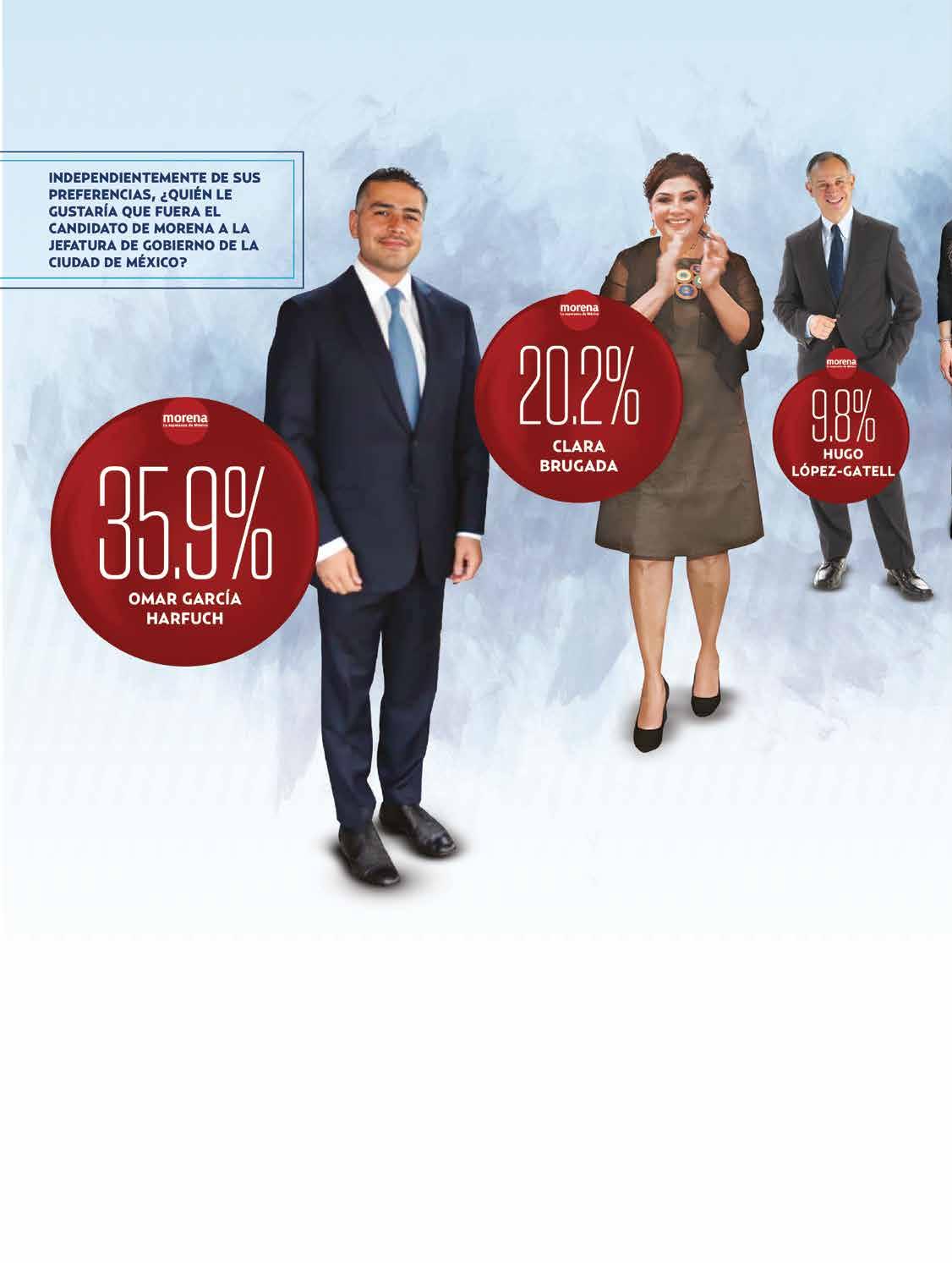 › La encuesta que publica hoy El Heraldo de México/ Poligrama dará mucho de qué hablar, pues pone en primer lugar de las preferencias electorales al extitular de la Secretaría de Seguridad Ciudadana de la capital, Omar García Harfuch, y en segundo a la exalcaldesa de Iztapalapa, Clara Brugada Molina, por lo que marca cómo inicia la pelea interna para convertirse en el candidato, o candidata, de Morena a la Jefatura de Gobierno de la Ciudad de México.