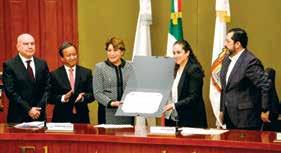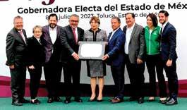› Bien arropada estuvo Delfina Gómez en la ceremonia de recepción de su constancia de mayoría, que la acredita como gobernadora electa del Estado de México. En la sala de sesiones del IEEM, la maestra estuvo acompañada de sus operadores de campaña Horacio Duarte e Higinio Martínez, el representante de Morena ante el Instituto, Francisco Vázquez, además de diputados locales y alcaldes, quienes convirtieron el acto en una fiesta.