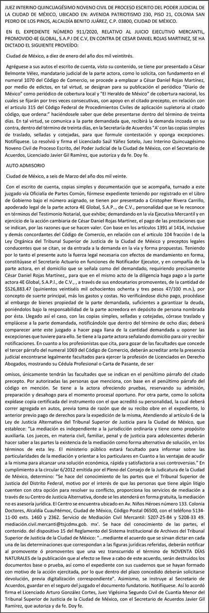 Diario El Heraldo de México. Editor responsable: Alfredo González Castro. Número de Certificado de Reserva otorgado por el Instituto Nacional del Derecho de Autor 04-2009-060419022100-101. Número de Certificado de Licitud de título y Contenido No.16921. Domicilio de la Publicación: Paseo de la Reforma No. 250, Piso 24, Colonia Juárez, Del. Cuauhtémoc, C.P. 06600, Ciudad de México. Imprenta: Impreso en Talleres de La Crónica Diaria , S.A. de C. V. Calzada Azcapotzalco La Villa No. 160 , Barrio San Marcos Alcaldia Azcapotzalco, CP 02020. Publicación Diaria. Todos los derechos están reservados. Queda estrictamente prohibida la reproducción total o parcial de los contenidos e imágenes de esta publicación sin previa autorización de El Heraldo de México. El contenido de los artículos es responsabilidad exclusiva de los autores.