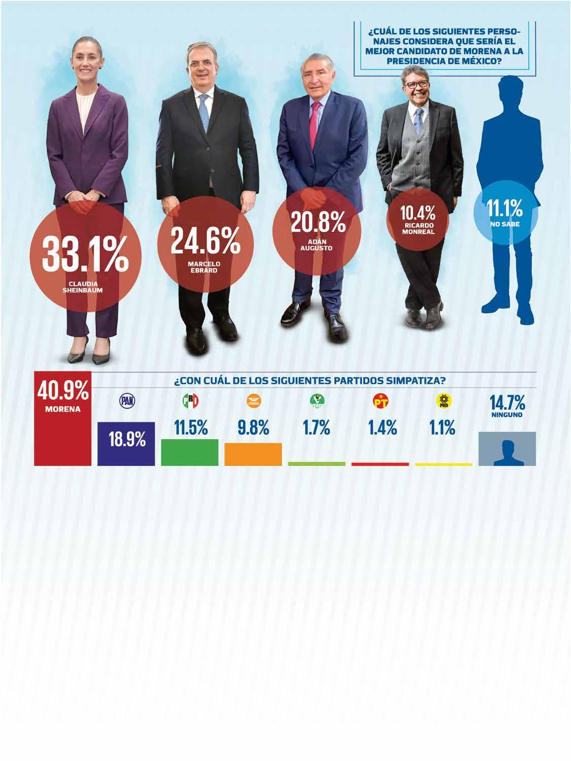 POR NOEMÍ GUTIÉRREZ/P4 EL PRESIDENTE ANDRÉS MANUEL LÓPEZ OBRADOR ASEGURÓ QUE NINGÚN DOCENTE DEL PAÍS PODRÁ GANAR MENOS DE 16 MIL PESOS MENSUALES. EL AJUSTE SERÁ RETROACTIVO DESDE ENERO DE ESTE AÑO #15DEMAYO DAN AUMENTO SALARIAL DE 8.2% A MAESTROS #CORCHOLATAS MORENA P6 ADÁN AUGUSTO, CRECE SHEINBAUM, ARRIBA; GR ÁFICO: ARTU RO R A MÍRE Z MORENA, A TRIBUNALES CONTRA EL PT #COAHUILA P8 F OT O : G U I LL E R M O O G A M #LITERARIO RECLUSOS INICIAN VOTO ANTICIPADO P22 #EDOMEX crónica como género FOTO: ARTURO CALLEJO F OT O : E S P E C I A L ILUSTRACIÓN: GUSTAVO A ORTIZ Crónica. Periodismo y literatura ¡MÁS ORO EN L A ALBERCA! #COPADELMUNDO 33.1% 24.6% 20.8% 10.4% 11.1% NINGUNO ADÁN AUGUSTO MARCELO EBRARD RICARDO MONREAL CLAUDIA