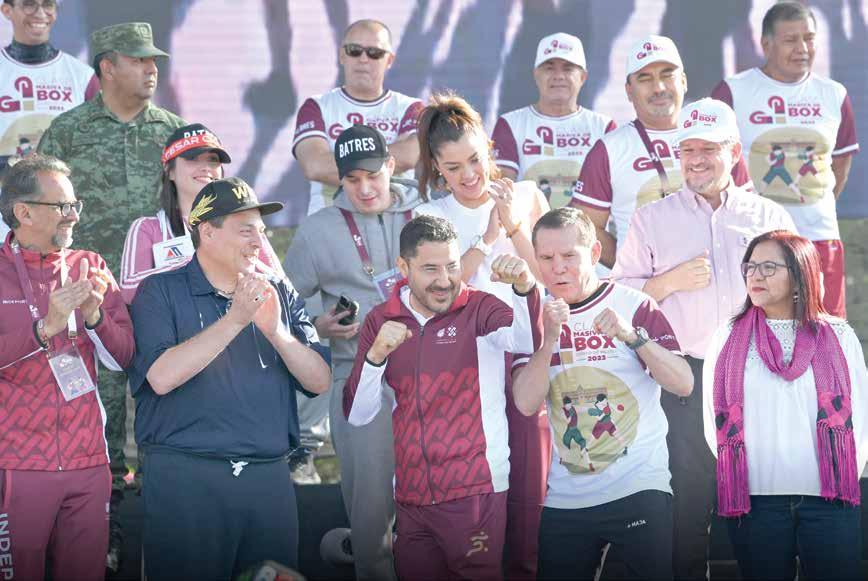 Presenciando la hazaña y acompañado por grandes leyendas del boxeo tricolor, Mauricio Sulaimán, presidente del Consejo Mundial de Boxeo, estuvo participando en la rutina, que terminaron de impartir las exmonarcas Ana María Torres, Erika Cruz,