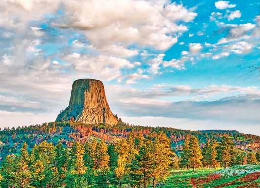 CONSIDERADA SAGRADA POR LAS COMUNIDADES INDÍGENAS DE LAS LLANURAS DEL NORTE, LA TORRE DE DIABLO EL PRIMER MONUMENTO NACIONAL DECLARADO POR EL GOBIERNO ESTADOUNIDENSE SE ELEVA SOBRE EL VALLE ATRAYENDO, DESDE HACE SIGLOS, LAS MIRADAS Y LA IMAGINACIÓN DE LOS VIAJEROS. ADEMÁS, LAS CIENTOS DE GRIETAS PARALELAS QUE TREPAN POR SUS COSTADOS LA VUELVEN UNO DE LOS MONOLITOS MÁS ATRACTIVOS PARA ESCALAR EN ROCA EN NORTEAMÉRICA.