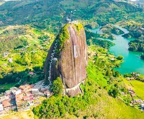 Al llegar a Guatapé lo primero que sobresale es el cerro del Peñol o Peñón de Guatapé, un monolito de aproximadamente 200 metros de altura y 60 millones de años desde su formación.