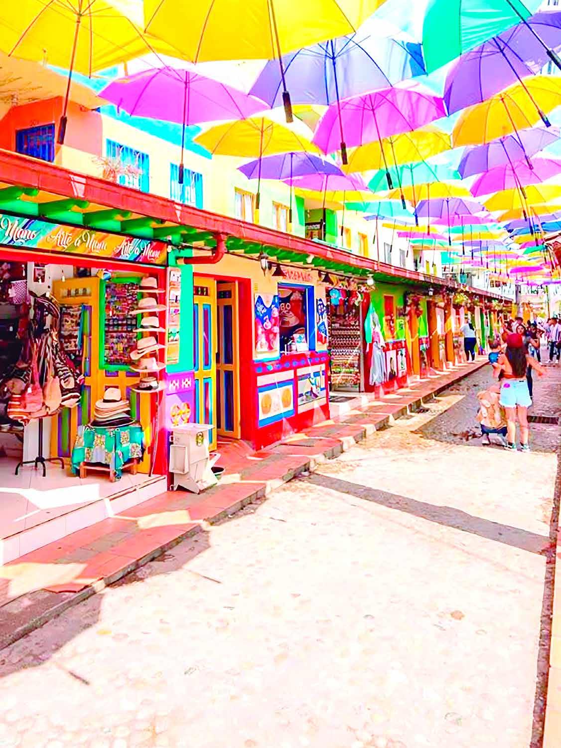 Tras viajar en una de las famosas “chivas” locales –como se le llama a los mototaxis coloridos representativos de ese lugar–, los visitantes pueden elegir subir los 702 escalones hasta la cima, aprovechando la presencia de vendedores para probar bocadillos locales, o también pueden sobrevolar el monolito en helicóptero, obteniendo, además, vistas panorámicas del lago artificial, popular para practicar deportes acuáticos. Al descender, pasamos por la calle de las sombrillas, un lugar muy colorido en donde encontrarás artesanías, sitios