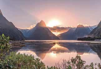 UBICADO EN LAS PROFUNDIDADES DEL PARQUE NACIONAL FIORDLAND, AL SUROESTE DE LA ISLA SUR, MILFORD SOUND ES UN PAISAJE DE PROPORCIONES MÍTICAS. ES UN FIORDO TALLADO POR ANTIGUOS GLACIARES, DONDE ESCARPADOS ACANTILADOS DE GRANITO SE ALZAN MILES DE METROS DIRECTAMENTE SOBRE LAS AGUAS OSCURAS Y TEÑIDAS DE COLORES FANTÁSTICOS. SILENCIO HELADO