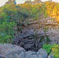 Al amanecer y al anochecer, miles de aves vuelan desde y hacia un abismo natural, de 60 metros de diámetro.