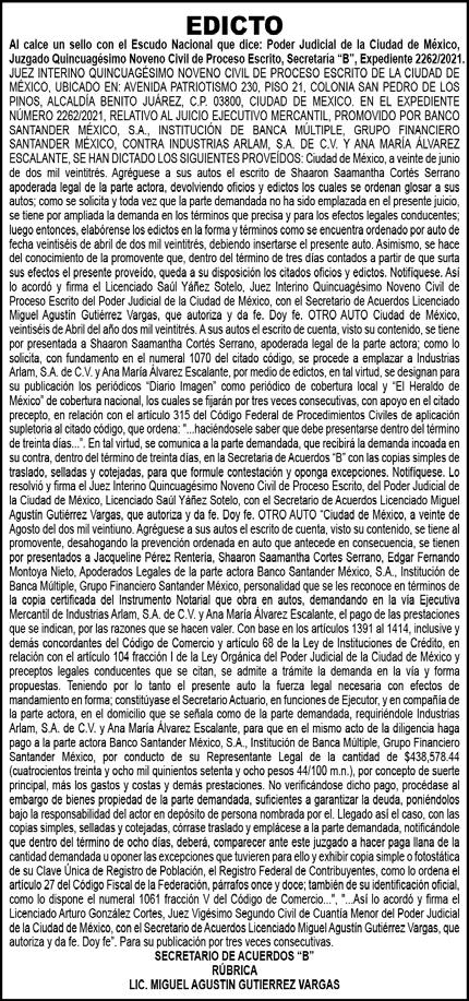 Diario El Heraldo de México. Editor responsable: Alfredo González Castro. Número de Certificado de Reserva otorgado por el Instituto Nacional del Derecho de Autor 04-2009-060419022100-101. Número de Certificado de Licitud de título y Contenido No.16921. Domicilio de la Publicación: Paseo de la Reforma No. 250, Piso 24, Colonia Juárez, Del. Cuauhtémoc, C.P. 06600, Ciudad de México. Imprenta: Impreso en Talleres de La Crónica Diaria , S.A. de C. V. Calzada Azcapotzalco La Villa No. 160 , Barrio San Marcos Alcaldia Azcapotzalco, CP 02020. Publicación Diaria. Todos los derechos están reservados. Queda estrictamente prohibida la reproducción total o parcial de los contenidos e imágenes de esta publicación sin previa autorización de El Heraldo de México. El contenido de los artículos es responsabilidad exclusiva de los autores.