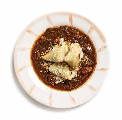 l Se sirve con sopes con cama de frijoles, lechuga, cebolla y cilantro. 12
