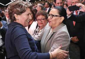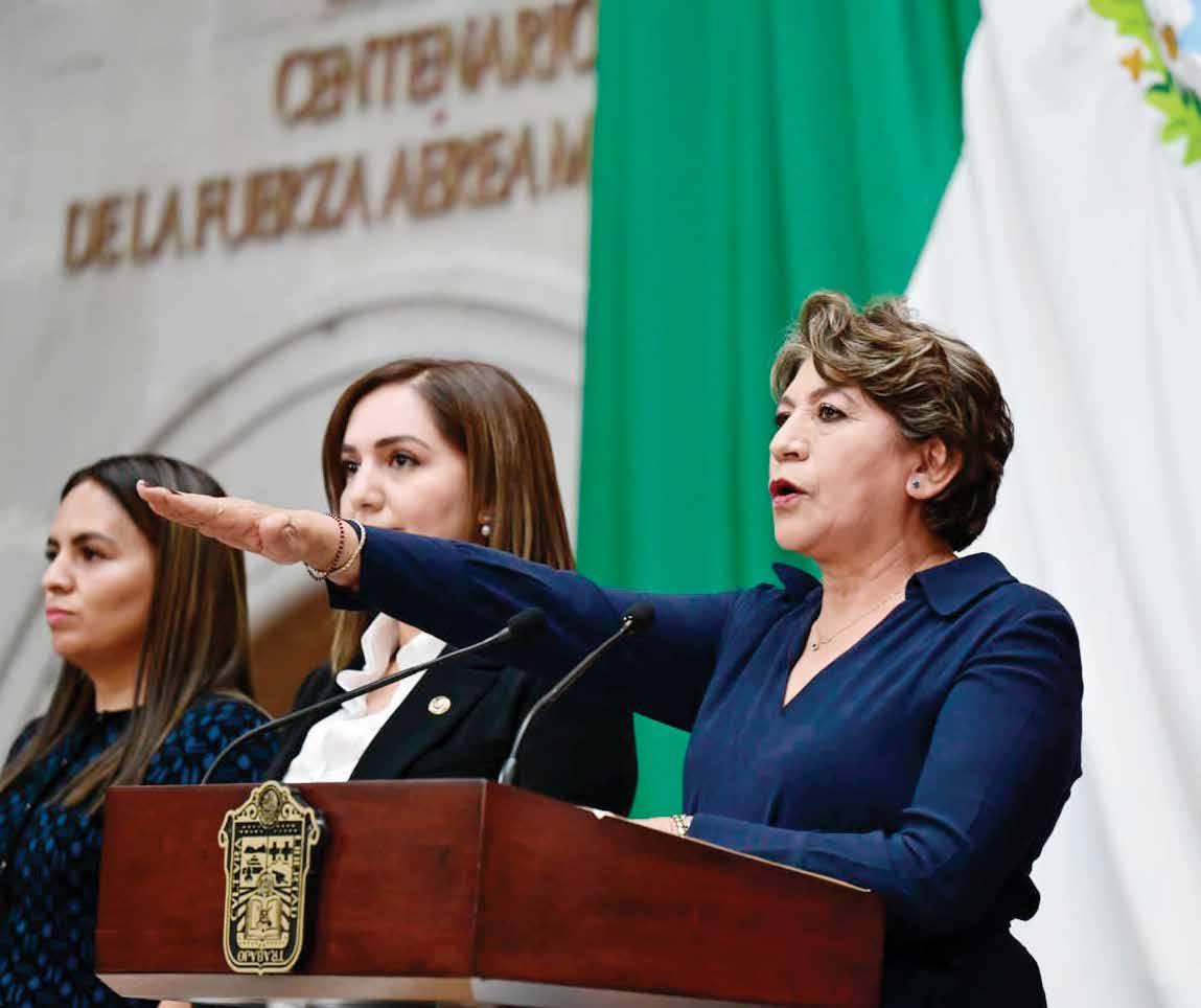 › Notoria fue la presencia de tres exgobernadores emanados del PRI en la rendición de protesta de Delfina Gómez. En el área de invitados especiales estuvieron Emilio Chuayffet, Arturo Montiel y Eruviel Ávila. Todos ellos, parte del grupo Atlacomulco que gobernó la entidad por al menos cinco décadas consecutivas.