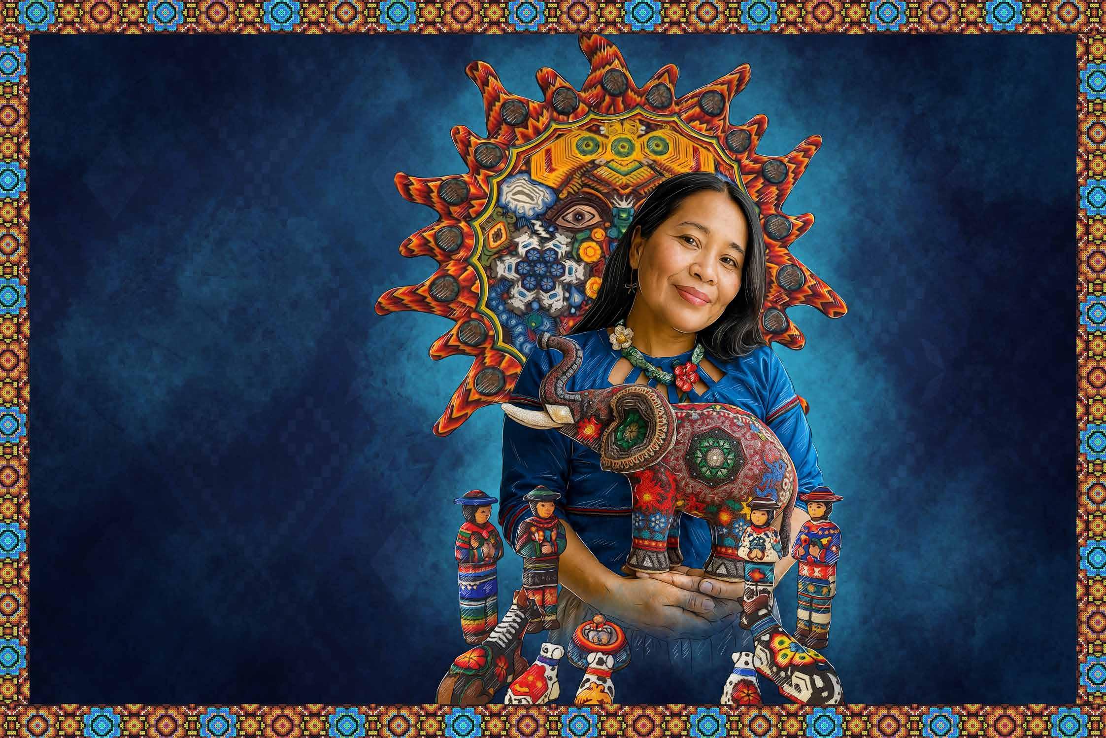 I am originally from Jalisco, Mexico. I was born 44 years ago in an environment surrounded by artisan tradition. Since childhood, I lived among colors, yarn, beads, and geometric patterns—materials used to create Wixárika art.