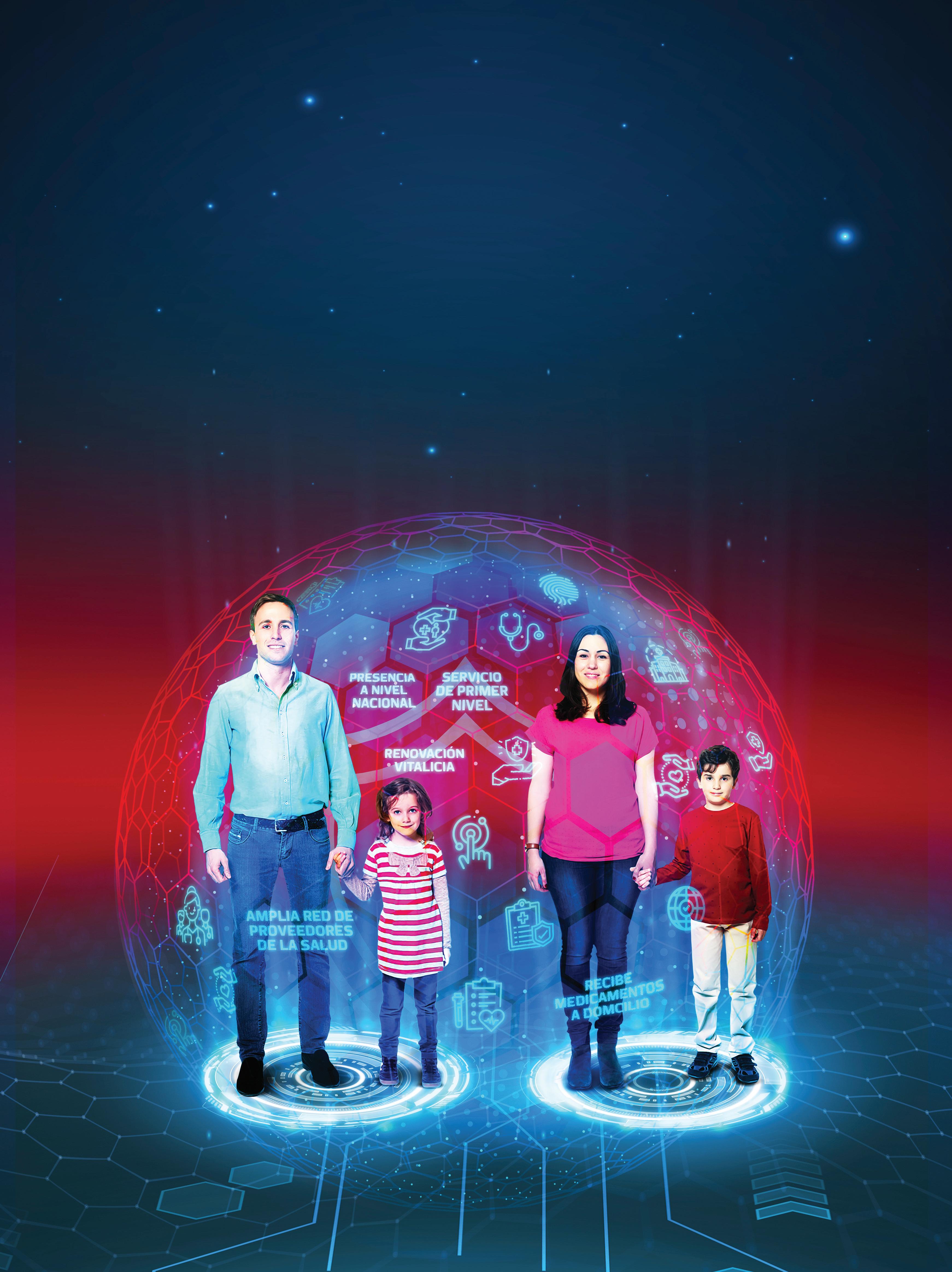 l Red de proveedores más amplia y acreditada del país con Vitamédica l 0 dedu cible y 0% coaseguro, con video consultas y medicinas a domicilio l Suma ase gurada anual por cada integrante de la póliza