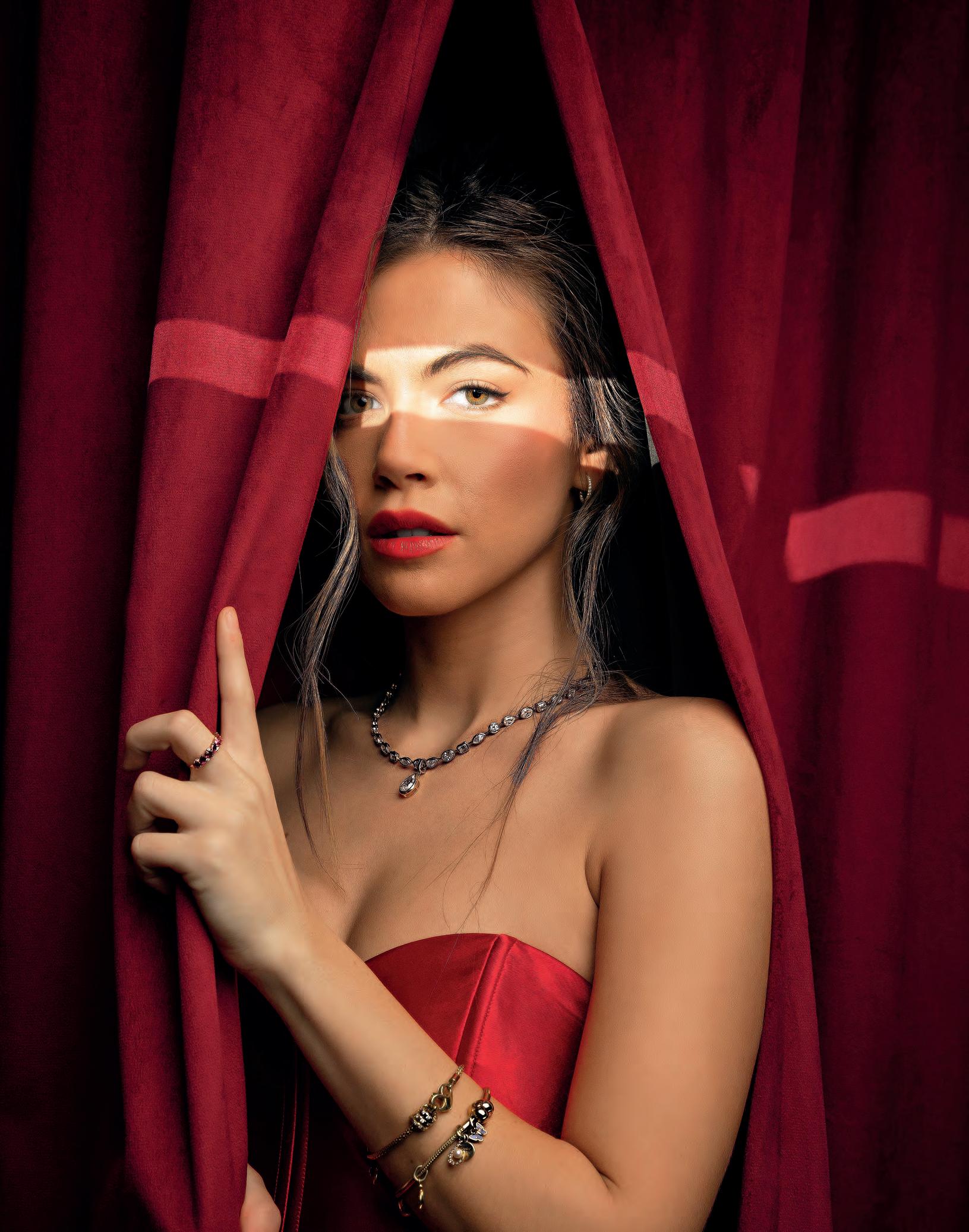 l Vestido Alfredo Martínez; Zapatos, Christian Louboutin; Aretes y anillo, Didiamant.