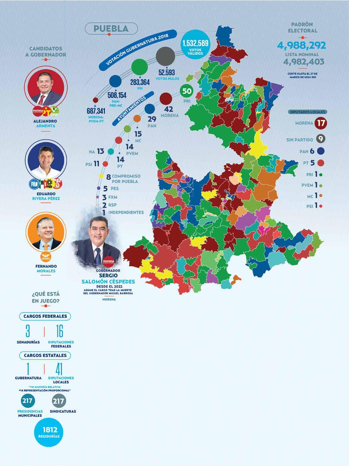 l S e elegirán a 18 presidentes municipales. Actualmente Morena gobierna en 10 municipios; PAS, 4; PRI, PT, PES, una presidencia cada uno. Hay un alcalde independiente.