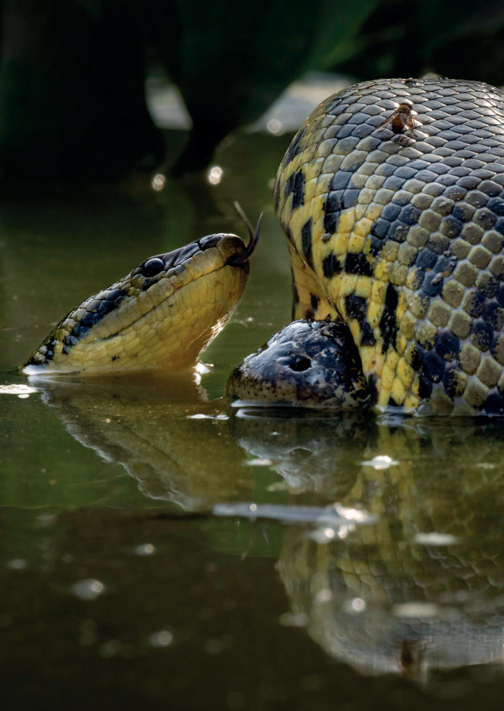 Kaimanek denetarik jaten dute, baita sugeak ere. Eta anakondek, hazi ahala, kaimanak ere sartzen dituzten euren dietan.