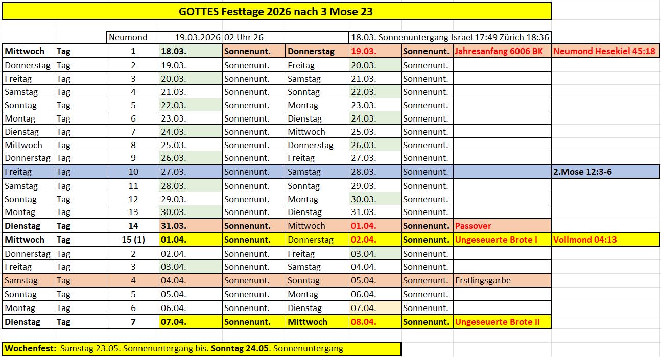 Nach dem Kalendersystem Gottes (hebr. Elohim) betraten wir 24. März 2020, das biblische Kalenderjahr 6000 BK. (Gottes Jahresbeginn siehe Exodus 12:2; Leviticus 23)