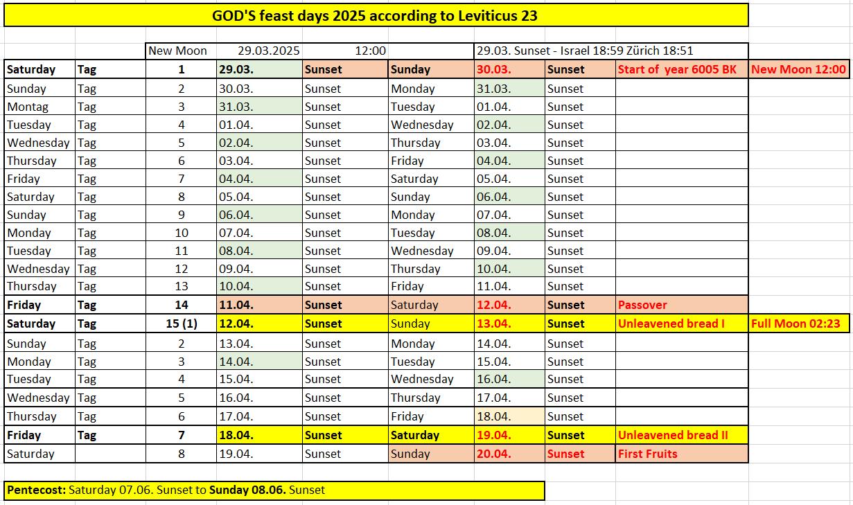 The Feasts and Memorials are GOD’s set times aligned with historic events (Ex 12-40) and rehearsals of a future event (Lev 23, 25); hence, they can be seen as a sign and a promise. HIS people look back in remembrance but also forward in prophetic anticipation of GOD'S saving work for humankind. GOD’s appointed times follow an annual lunar calendar harmonized with the four seasons and the agricultural cycle.