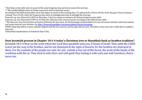 Does Jeremiah present in Chapter 10:1-4 today's Christmas tree or Hanukkah bush as heathen tradition? Jeremiah 10:1-4 Hear ye the word which the Lord thus speaketh unto you, O house of Israel: Thus saith the LORD, Learn not the way of the heathen, and be not dismayed at the signs of heaven; for the heathen are dismayed at them. For the customs of the people are vain: for one cutteth a tree out of the forest, the work of the hands of the workman with the ax. They deck it with silver and with gold; they fasting it with nails and with hammers, that it move not.