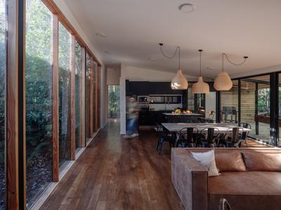Además, la funcionalidad se ve mejorada por la disposición estratégica de los muebles y elementos decorativos. En lugar de entorpecer el flujo, estos elementos están dispuestos de manera que guíen sutilmente el movimiento dentro de la casa. Los pasillos amplios y las transiciones suaves entre las habitaciones aseguran que cada espacio fluya de manera natural hacia el siguiente, facilitando tanto la vida diaria como la celebración de eventos sociales.