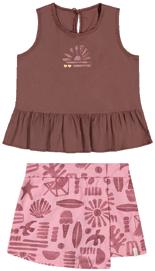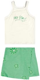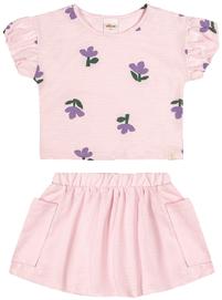 Conjunto com Blusa em Cotton Leve e Saia em Meia Malha