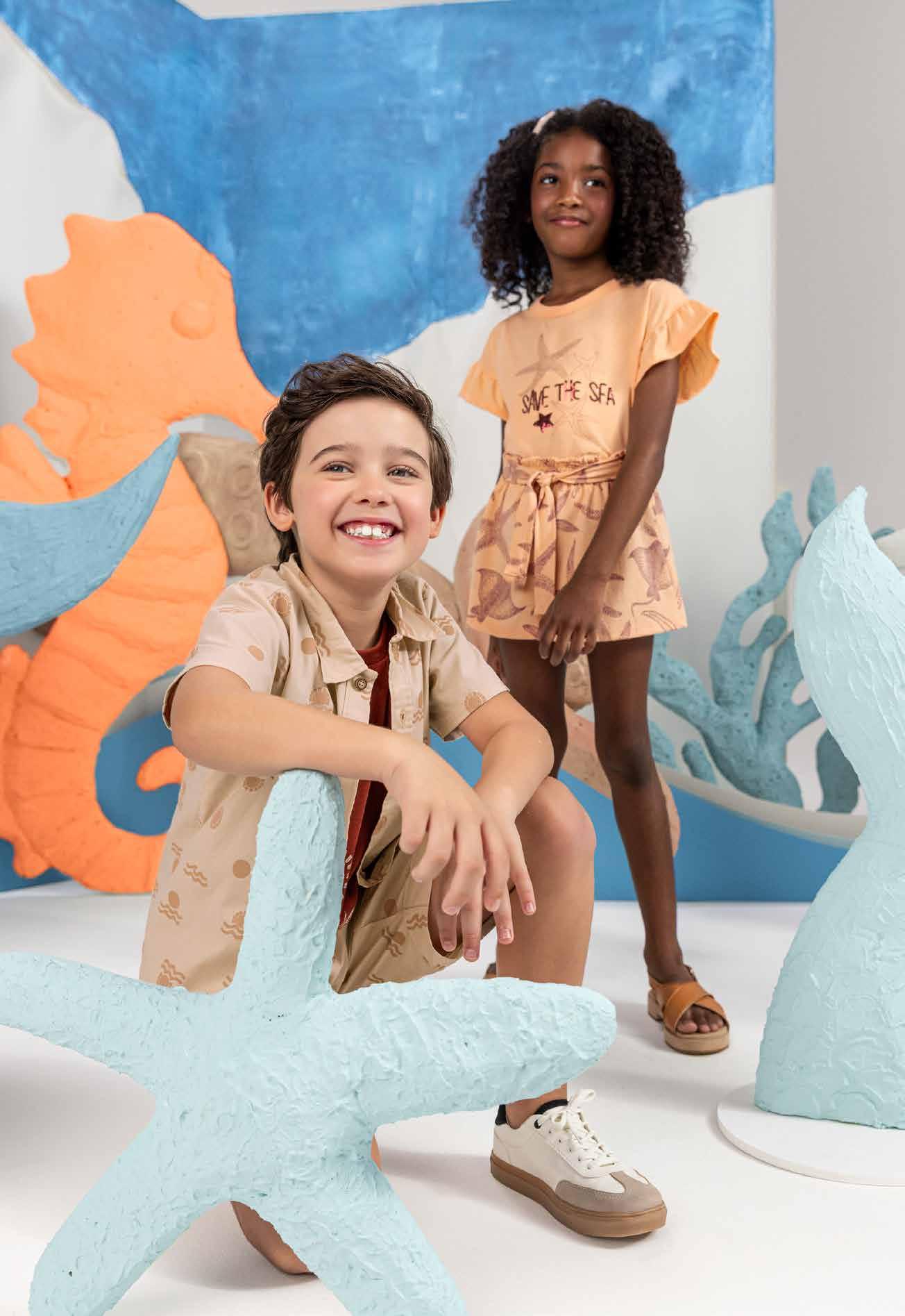 Com looks confortáveis e versáteis, os bebês estão prontos para explorar um universo de imaginação nas maravilhas do fundo do mar.