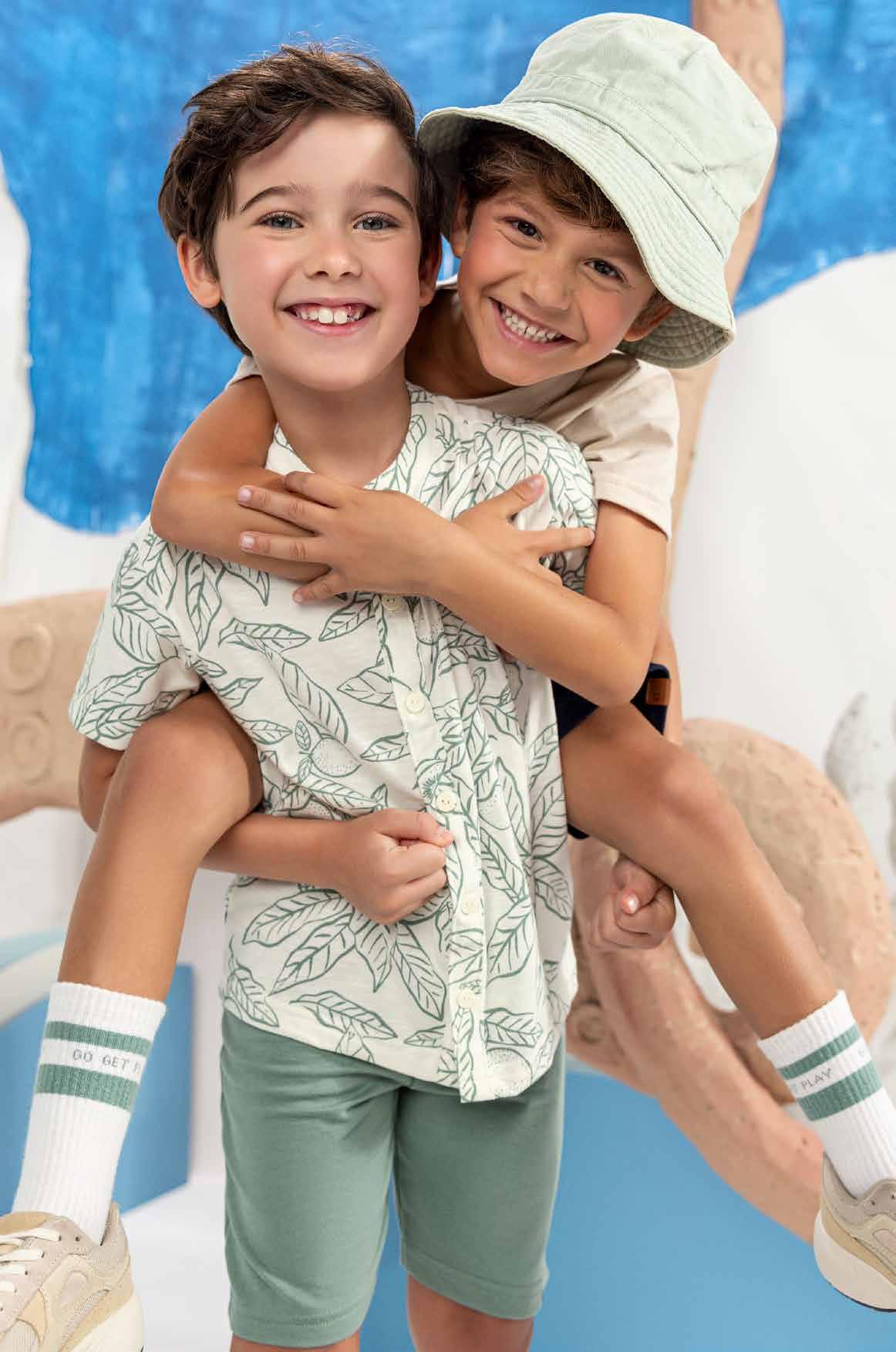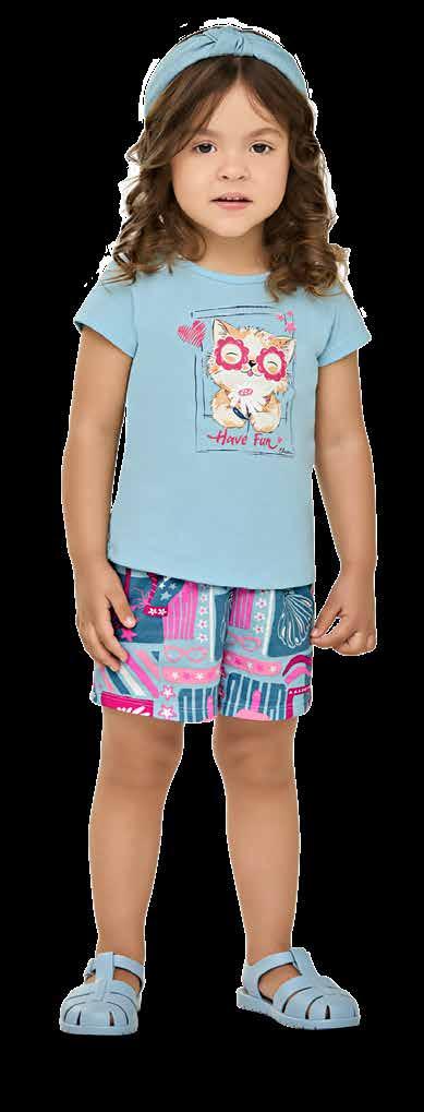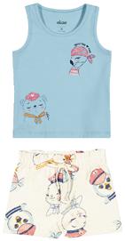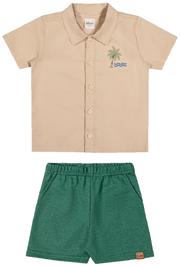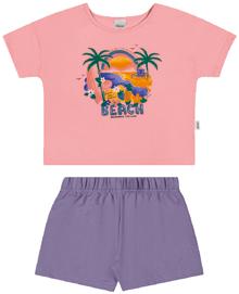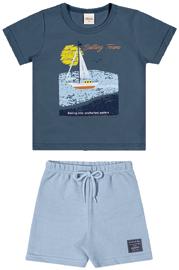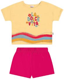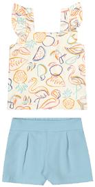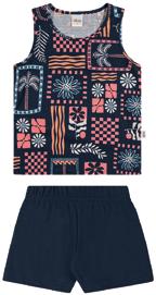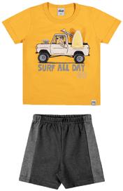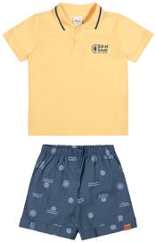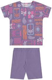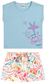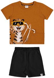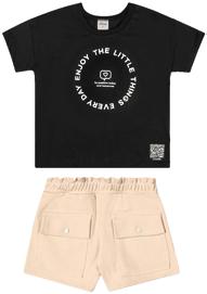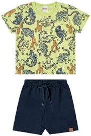 Conjunto com Camiseta em Meia Malha e Bermuda em Tecido Tricoline com Elastano Estampado Set with T-shirt in