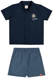 Conjunto com Camisa Polo em Meia Malha e Bermuda em Moletinho Texturizado Set with Polo Shirt in Jersey and Bermuda in Textured French Terry Conjunto con Camisa Polo de Punto y Bermuda en Moleton Texturizado