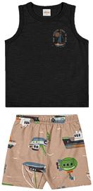 Conjunto com Regata em Meia Malha e Bermuda em Moletinho Dublado