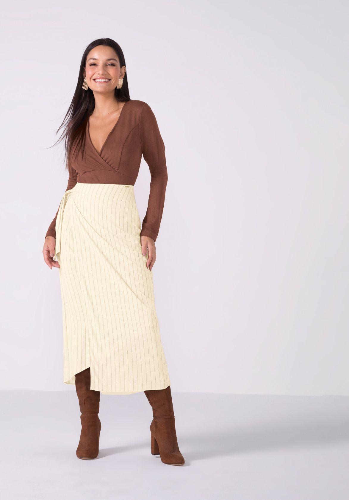 Crie looks incríveis usando a criatividade! A modelagem assimétrica valoriza as linhas desiguais criando uma silhueta super elegante e única.