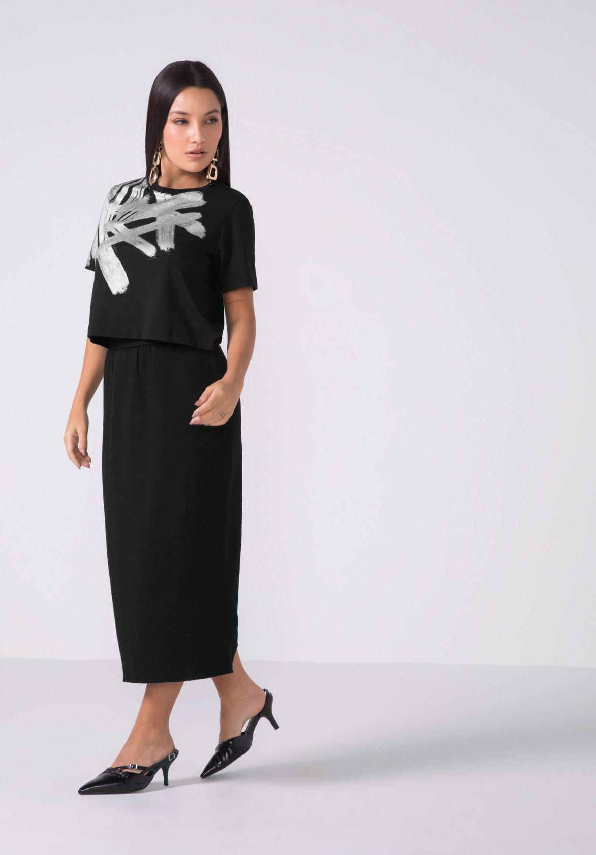Printed Viscose Fabric Skirt Falda en Tejido Plano de Viscosa Estampada