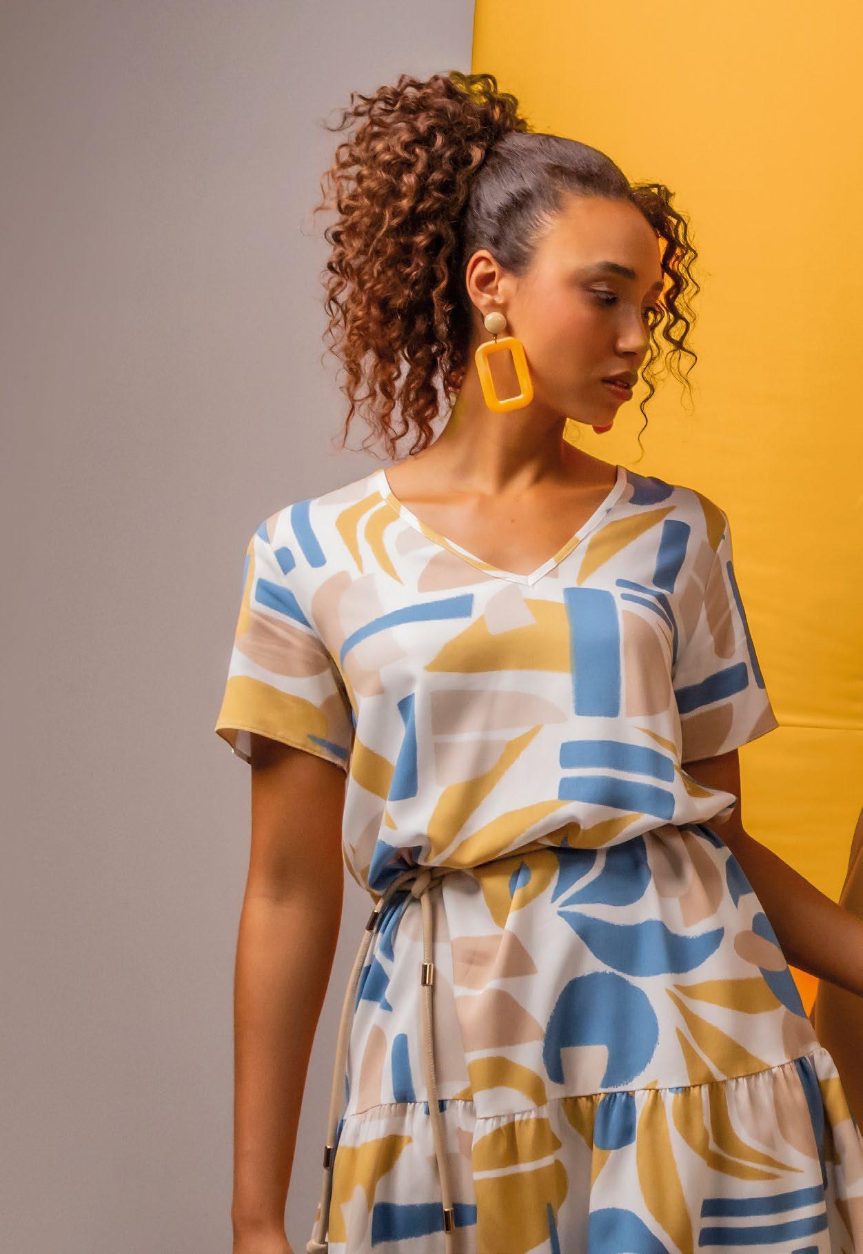 Vestido en Tejido Plano de Viscosa de Sarga Digital