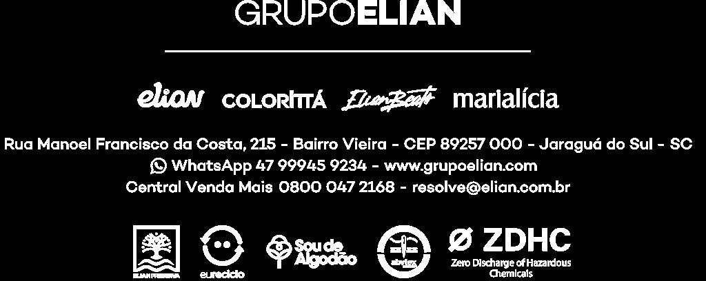183491.....59 183492.....87 183493.....89 183494.....15 183496.....17 183497.....21 183498.....47 183499.....25 183500.....81 183501.....93 183502.....95 183503.....77 183504....106 183505.....55 183506.....99 183507....114 183508.....33 183634.....67 183635.....45 183636.....63 183642.....61 183643.....71 183644.....85 183645.....89 183646.....37 183647.....51 183648....115 183649.....81 183650.....47 183813....107 183818.....79 52070.....139 52072.....140 52073.....140 52075.....140 52076.....140 52078.....135 52081.....131 52082.....139 52083.....133 52084.....137 52086.....141 52107.....137 52108.....131 52109.....139 52110.....139 52111.....141 52113.....141 52114.....141 52116.....131 52117.....135 52119.....141 52229.....141 52231.....141 52232.....141 52239.....135 52242.....139 52243.....133 52244.....133 52246.....131 52248.....133 52249.....135 52250.....131 52251.....133 2001 3142 4052 4522 5114 6025 6716 7046 8021 8028 8583 CANEL A D O 31,35% Viscose 63,65% Poliéster 5%Elastano CANEL A D O D E V IS C O S E 91% Viscose 9% Elastano CANEL A D O L I S T R A D O 46,82% Viscose 44,58% Poliéster 8,60% Elastano C OT TO N 96% Algodão 4% Elastano C OT TO N LE V E 96% Algodão 4% Elastano COU R I N O 60% poliuretano 40% Poliéster HEL A N CA F E L PA DA 86% Poliéster 14% Elastano JEA N S 100% Algodão L I G ANETE P ELE T I Z A DA 90% Poliéster 10% Elastano M A L H A CAN E L A DA A C E T I N A DA 94% Poliéster 6% Elastano M A L H A CRE P O N A DA 94,20% Poliéster 5,80%