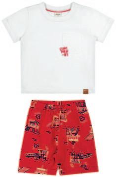 Conjunto com Camisa em Malha Flamê e Bermuda em Moletom sem Felpa Set: Flame Jersey Shirt and French Terry Bermuda Conjunto: Camisa en Tejido de Punto Flamê y Bermuda en Moletom