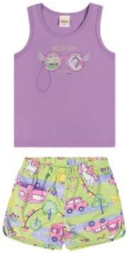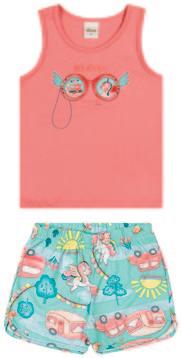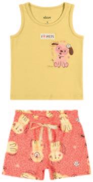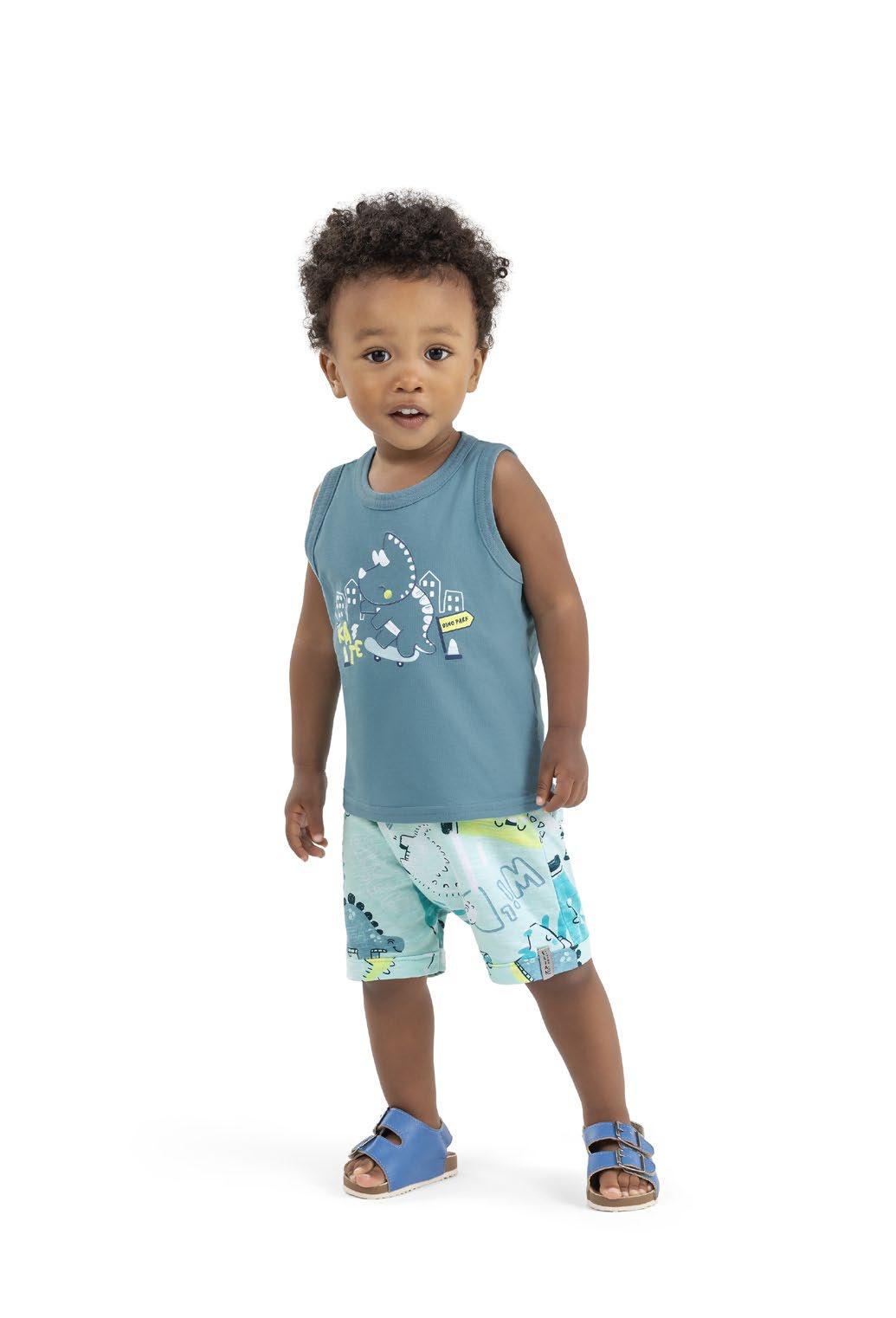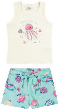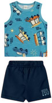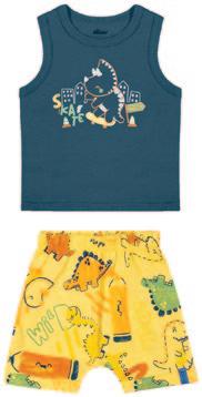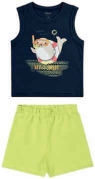 Conjunto: Camiseta sin Mangas en Tejido de Punto y Bermuda en Moletom Estampa com puf