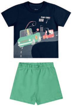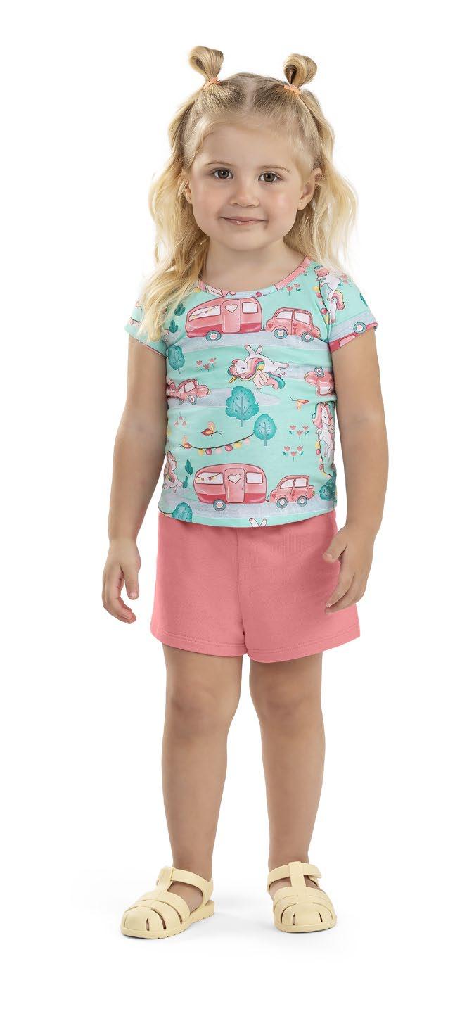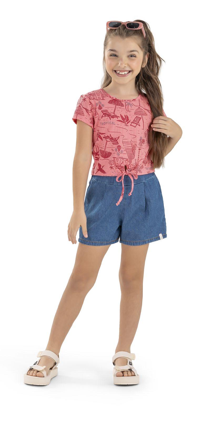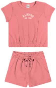 Conjunto com Blusa em Cotton Leve e Shorts em Meia Malha