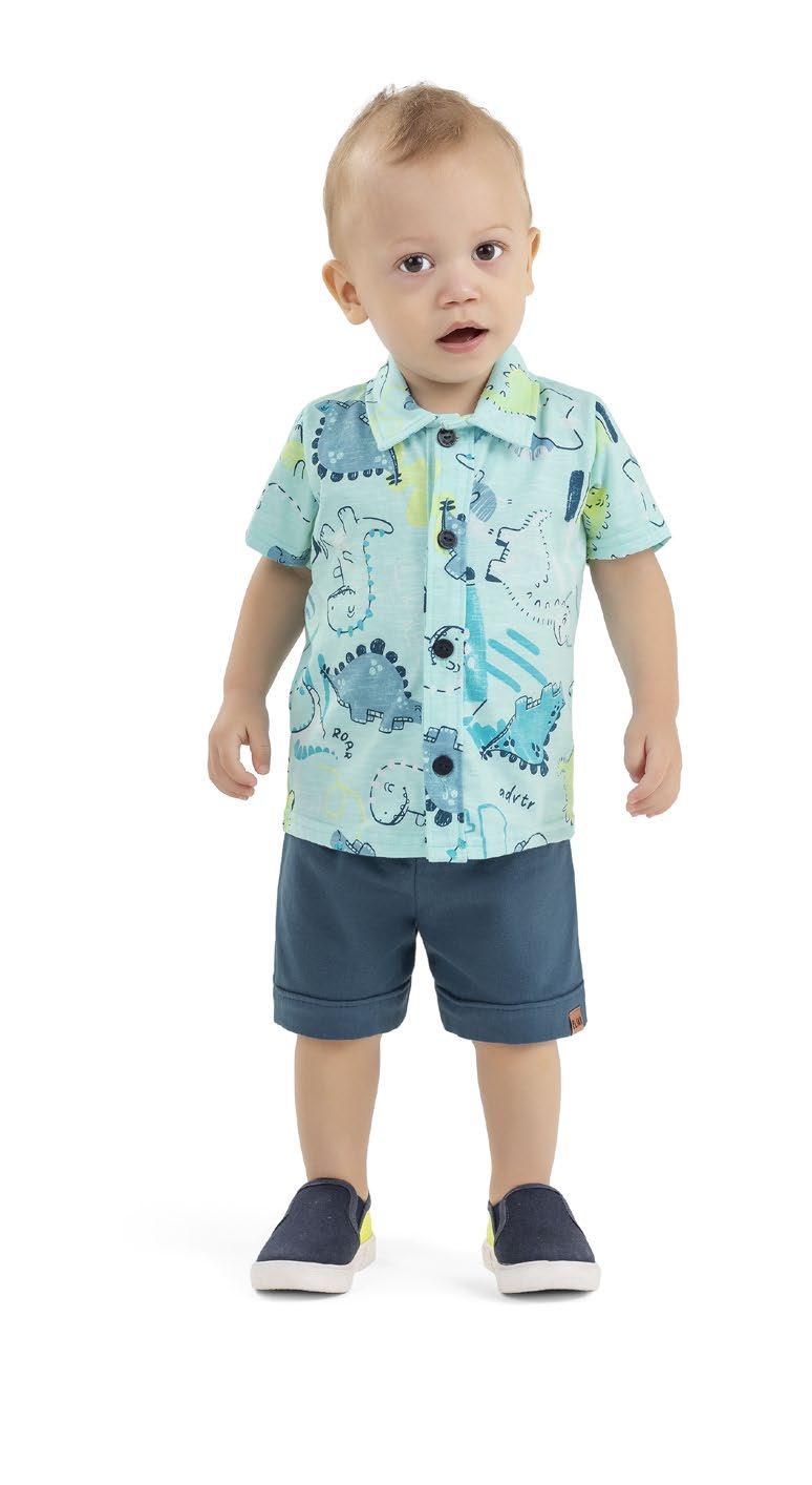 Conjunto: Camisa Polo en Tejido de Punto y Bermuda en Sarga Estampa com puf