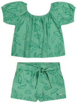 Conjunto com Blusa em Cotton Leve e Shorts em Meia Malha Set: Cotton Light Blouse and Jersey Shorts